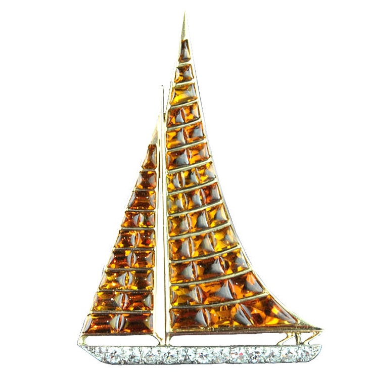 Broche Yacht en platine et or, diamants et citrine. Vers 1920. Photo : 1stdibs