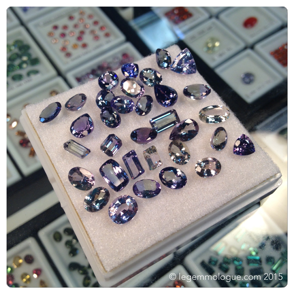 Intéressante sélection de tanzanites naturelles et non chauffées sur le stand de Thierry Pradat.
