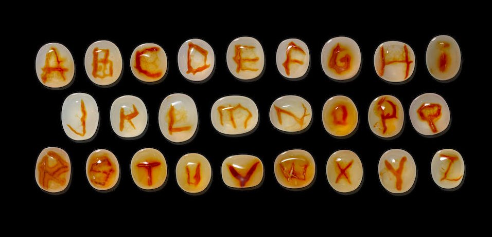 Lot 2055 : rare ensemble d’agate « alphabet » en provenance d’Indonésie. Il existe peu d’ensemble de ce type, ceux qui parmi mes lecteurs arpentent les ventes de minéraux se souviendront d’un très bel exemple conservé dans la collection de M. Laurent Sikirdji (Gemfrance). Estimation entre 2000 et 3000$. Photo : Bonhams