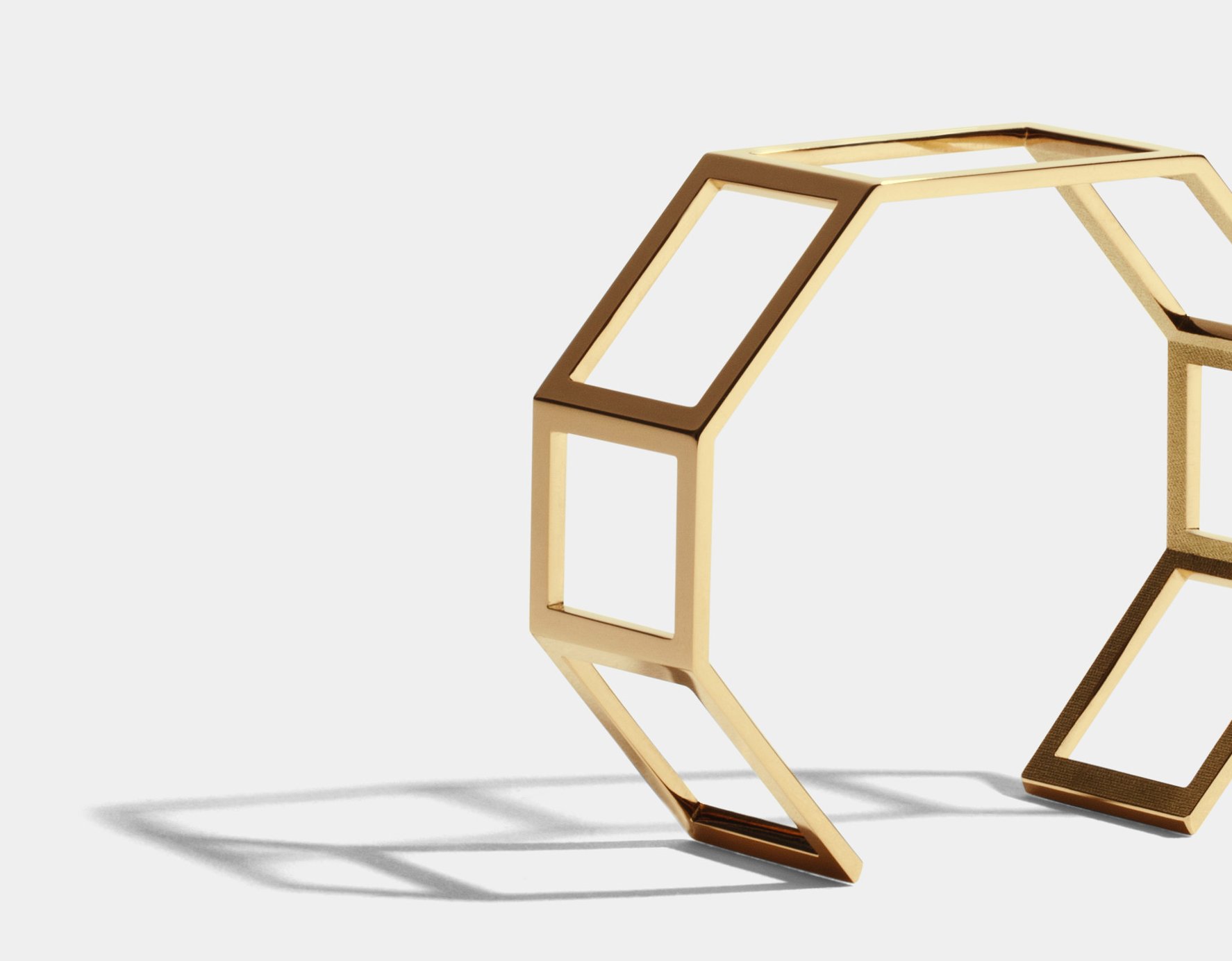 Manchette en or jaune éthique 750 de la collection Octogone par Ha Yeon Lee pour JEM (2016). Photo : ©MarieChabrol