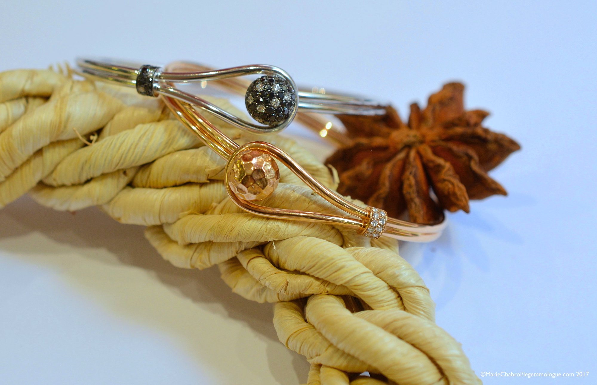 Bracelets Pepper en or rose / diamants et or blanc / diamants incolores et noirs. Photo : ©MarieChabrol / legemmologue.com