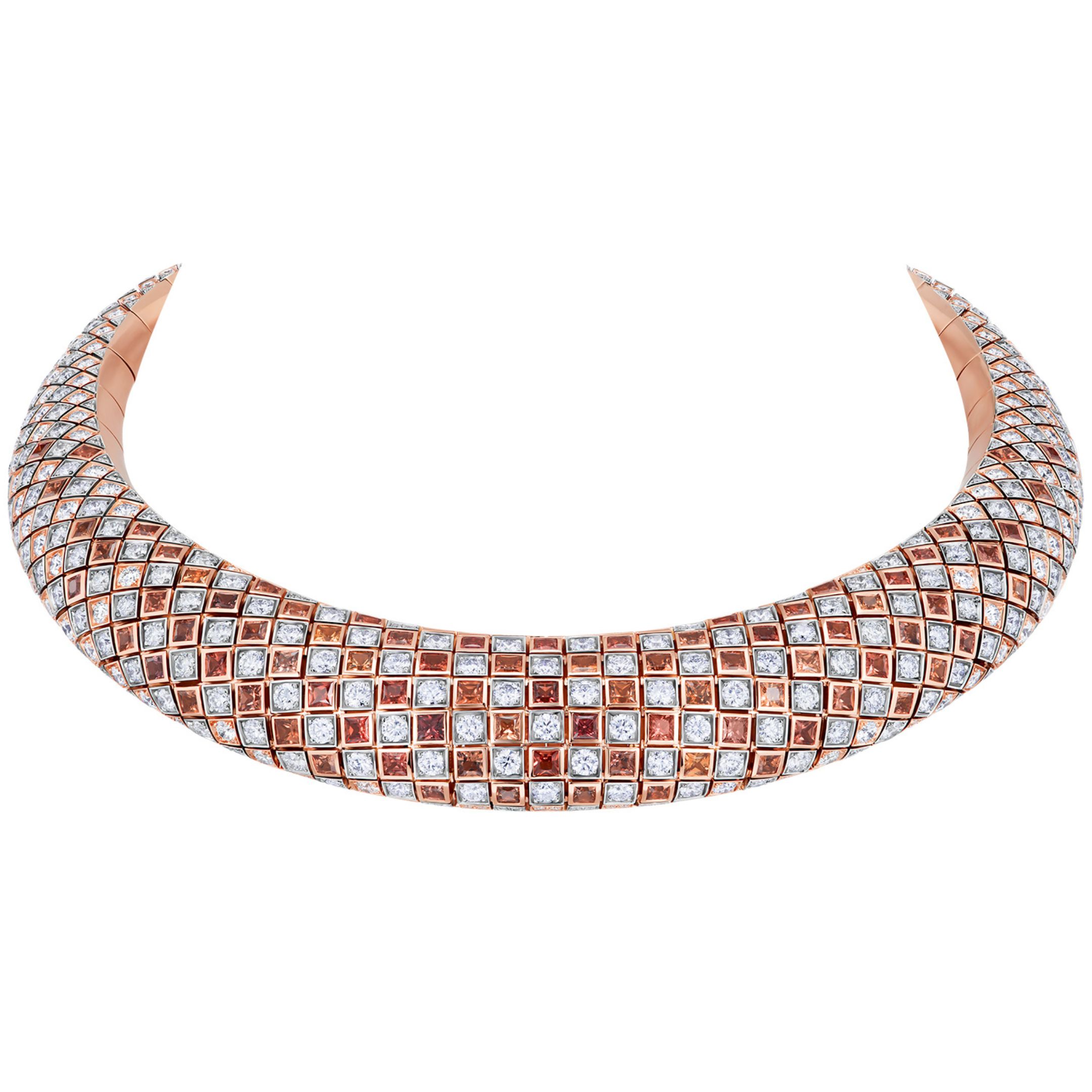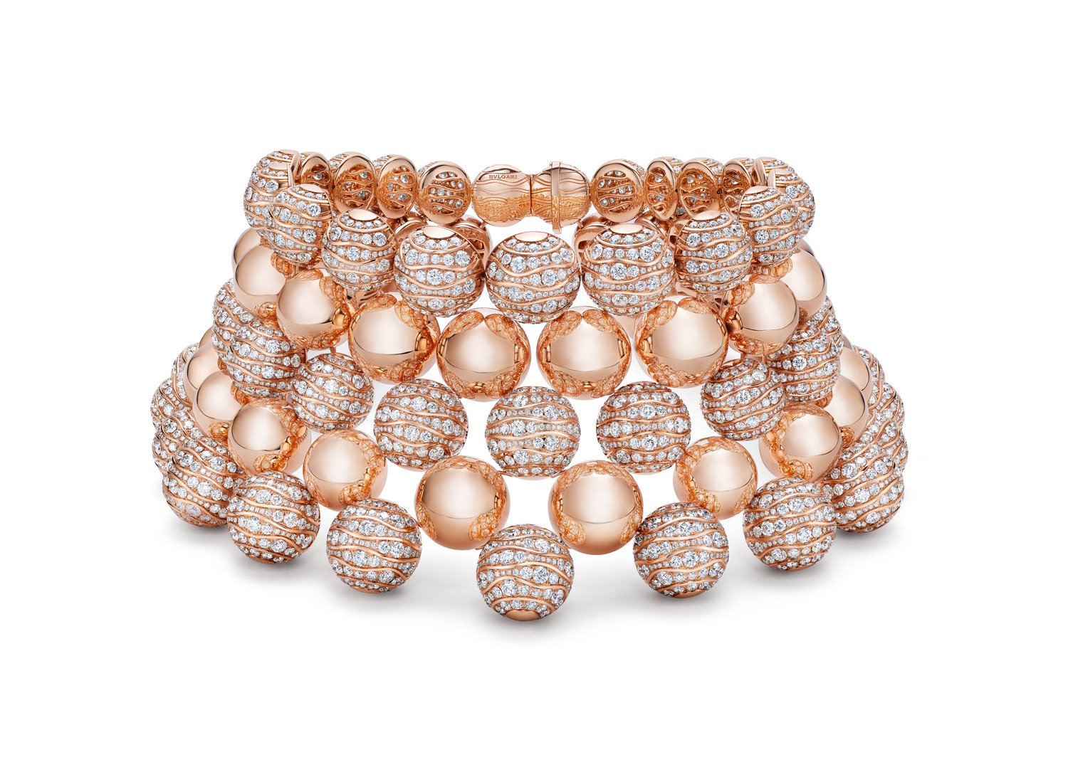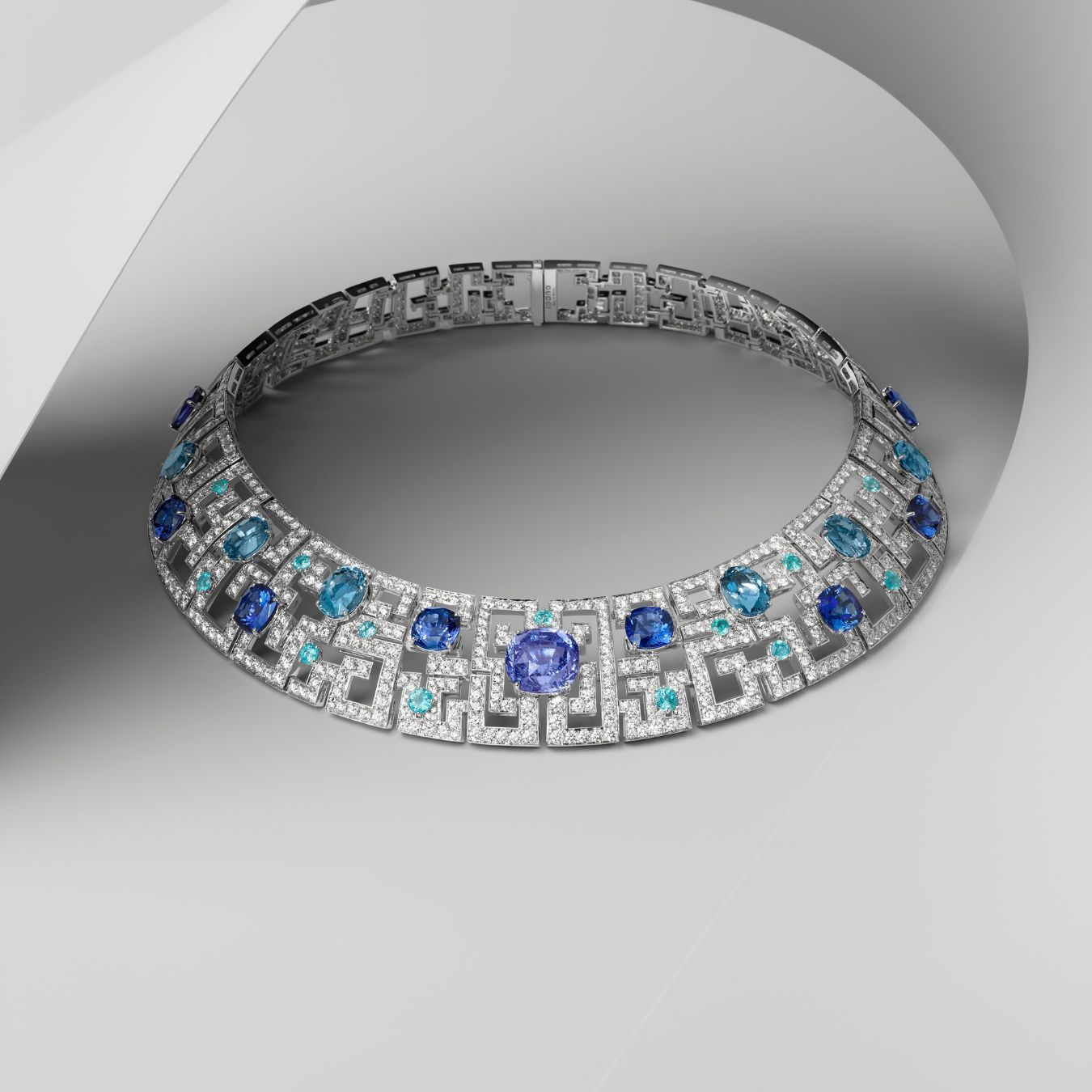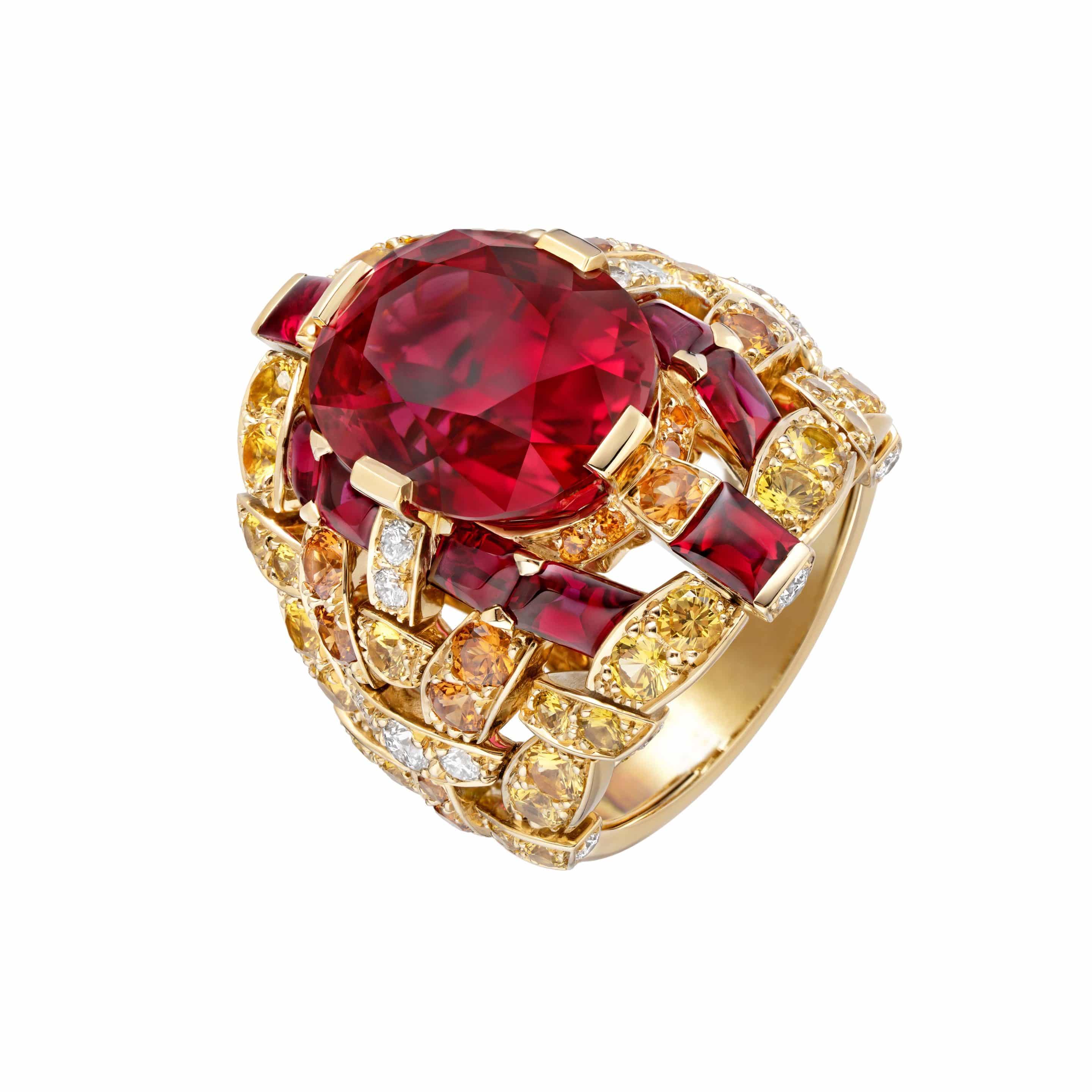 Cette nouvelle collection qui met en lumière de très nombreuses nouvelles pièces s’articule autour de l’aluminium coloré, des gemmes étonnantes à l’image d’une tourmaline orange de plus de 40 carats, d’un diamant de type IIA de presque 6 carats ou encore de deux grenats spessartites bruts de plus de 47 carats. Un ensemble bouillonnant de couleurs franches qu’elles viennent des pierres comme de l’émail qui rehausse plusieurs pièces. Quand à l’utilisation de l’aluminium, l’anecdote prête à sourire car les artisans qui les réalisent ne sont, à l’origine, pas spécialisés dans la joaillerie mais dans la peinture sur métal et carrosseries. Ils leur a fallu adapter l’outillage et les techniques pour répondre à cette demande surprenante dont le résultat est véritablement réjouissant. Une mention toute spéciale pour la bagues et les boucles d’oreilles Wrap it up qui sont aussi joyeuses que leur créatrice !