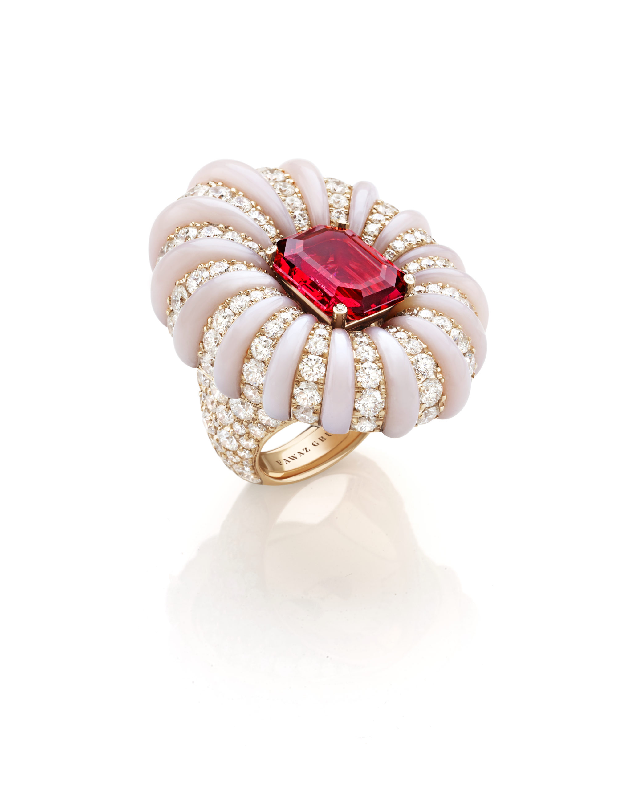 Bague planète en or rose et opale d’Ethiopie. Photo : ©MarieChabrol