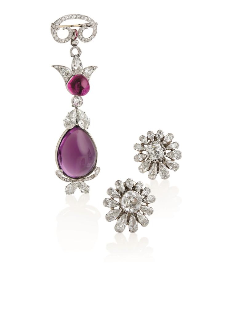 Les lots 55 et 56 sont parmi les plus beaux lots de la vente. Le numéro 55 est une broche en platine et or, diamants, améthyste, rubis. Il est estimé entre 6000 et 8000 €. Le lot 56 est un très bel exemple de René Boivin vers 1930 en or et diamants. Estimation entre 15,000 et 20,000 €. Photo : Christie’s