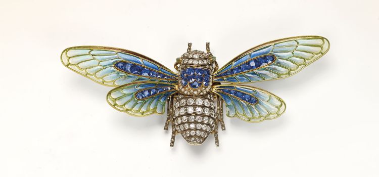 Une rare broche « Cigale » en or, diamants et émail par Boucheron de 1902. Non signée mais avec un certificat Boucheron. Vendu chez Christie’s Paris en novembre 2018 pour plus de 335 000 €. Image: Christie’s.