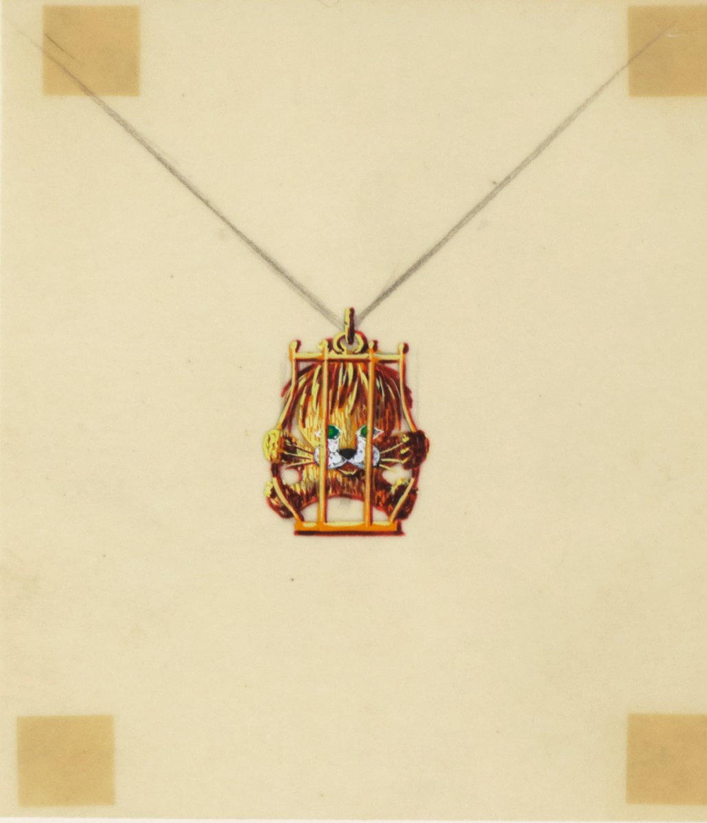 Dessin représentant un pendentif « lion en cage », vers 1960. Archives Van Cleef & Arpels.