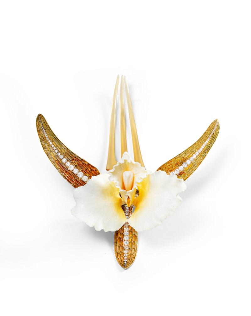 Peigne ivoire, corne, émail et diamants, « Cattleya ». Héritiers de René Lalique. Acquis en 1976 à Paris, auprès d’un descendant de René Lalique. Estimation entre 700,000 et 1,5 millions d’euros. Photos: Sotheby’s
