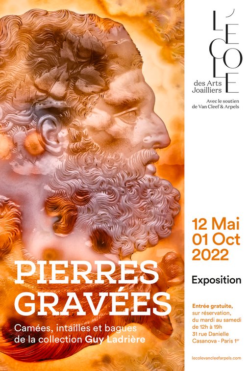 Depuis le 12 mai et jusqu’au 1er octobre 2022, l’École des Arts Joailliers avec le soutien de Van Cleef & Arpels célèbre l’art de la glyptique au travers d’une exposition en entrée libre sur réservation. Qu’il soit en relief – on parle alors de camées – ou en creux – il s’agit alors d’intaille – l’art des pierres gravées fascine autant qu’il questionne. Aimé ou détesté, le camée est un élément indissociable de l’histoire de la parure depuis des millénaires. L’exposition de la collection privée de Guy Ladrière (marchand d’art spécialiste des arts premiers et de l’art médiéval) est l’occasion de découvrir plus de 200 pièces dont des intailles grecques et néoclassiques, des camées antiques et médiévaux, des petites sculptures d’époque impériale, des bagues signets mérovingiennes ou encore des anneaux épiscopaux encore jamais présentés au grand public. D’un point de vue plus personnel, cette très jolie exposition m’a réconcilié avec les camées et m’a permis de mieux les appréhender. Cet événement se complète d’un très beau livre publié en coédition par L’École des Arts Joaillier et la maison d’éditions Mare&Martin. Écrit par Philippe Malgouyres (historien de l’art et conservateur en chef du patrimoine au Département des Objets d’Art du musée du Louvre depuis 1997), ce très bel ouvrage de 304 pages est proposé au prix de 49 euros. Il est disponible sur le site de l’exposition, rue Danielle Casanova, et dans toutes les bonnes librairies.