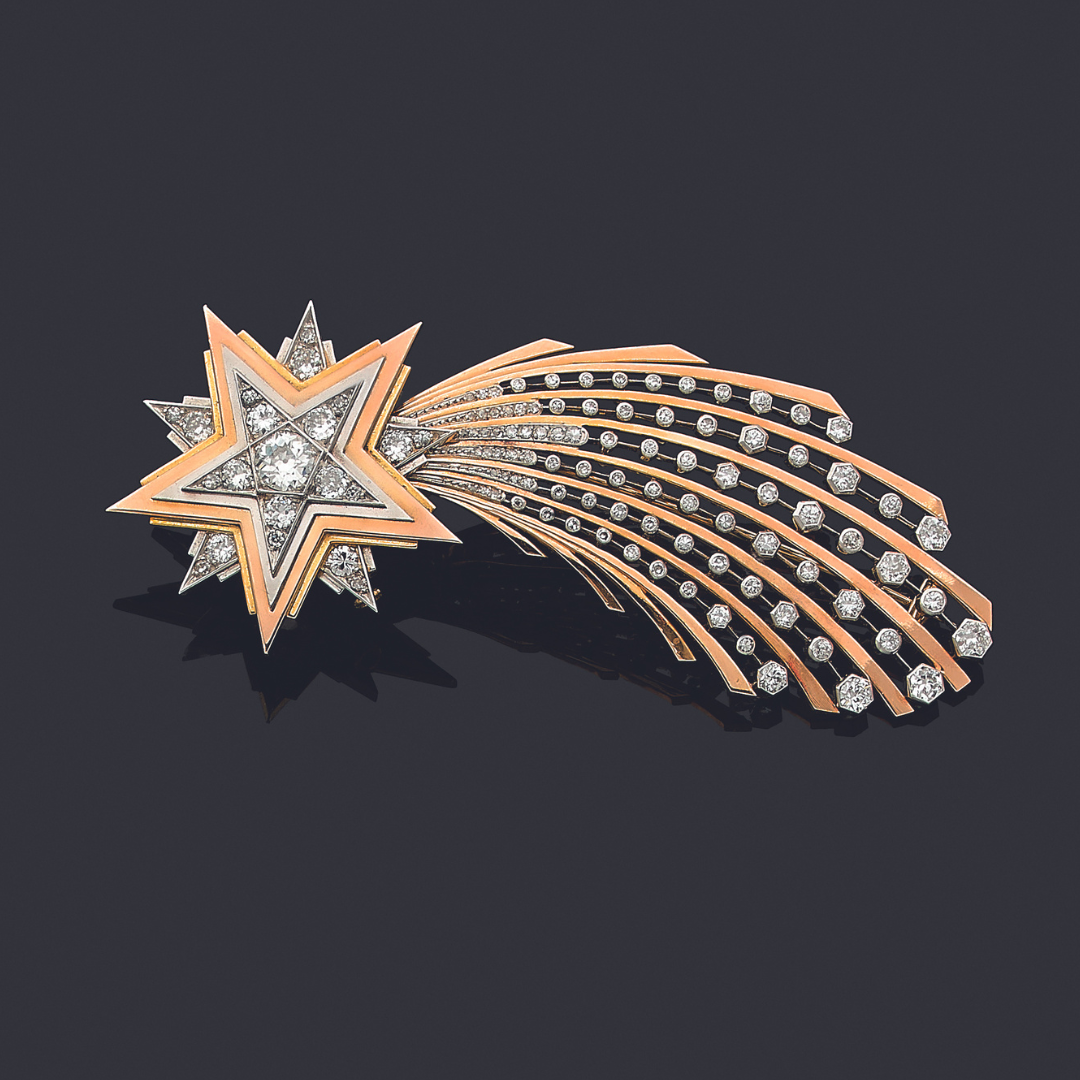Lot 80 : Broche étoile filante en or, platine et diamants. Estimation entre 3000 et 4000 euros. Photo : Aguttes