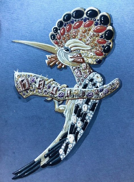 Gouache de 2022 représentant une huppe fasciée ; broche ; concept et dessin par Florian H.A. Wicki