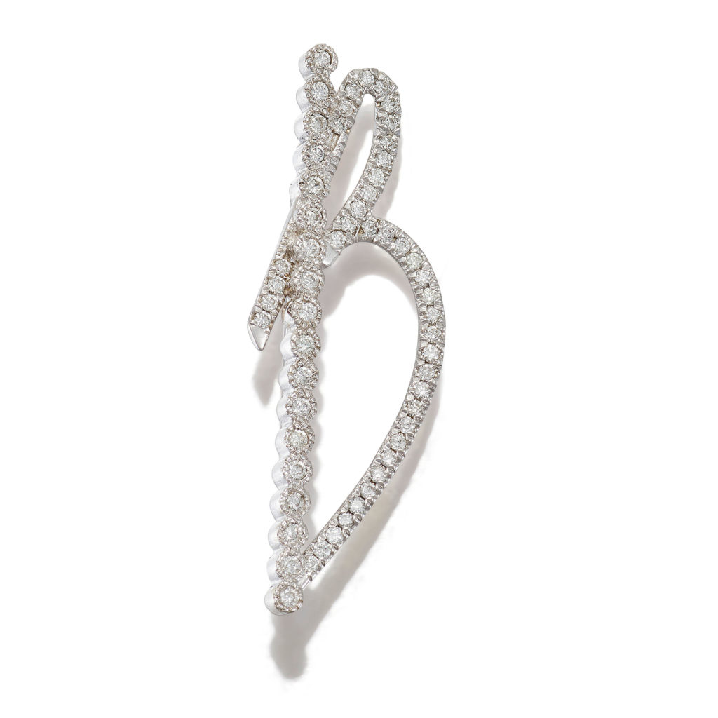 Pour clore cette petite sélection, impossible de ne pas parler de cette broche « B » en or et diamants. « B » comme Barbara bien sûr mais que le prochain propriétaire pourra adapter à son prénom ou nom à condition qu’ils commencent par la même lettre. L’initiale sertie de diamants est un classique de la joaillerie. Il n’est donc pas surprenant d’en trouver un exemple dans cette collection. Estimation entre 1000 et 1500 dollars.