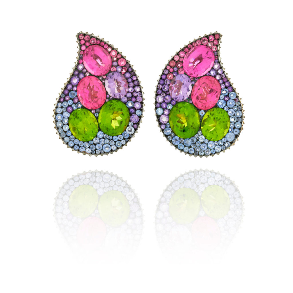 JAR est bien présent dans la collection de Barbara Walters et ce n’est pas vraiment étonnant. Pas moins de trois lots signés du créateur se présente dans cette vente. Je retiens plus particulièrement le lot 86 dont j’aime autant la forme (le motif boteh est un motif traditionnel perse) que les couleurs. Serti de tourmalines, de saphirs, de diamants et de péridots, je trouve les couleurs de ces boucles fascinantes. Estimation entre 180,000 et 250,000 dollars.