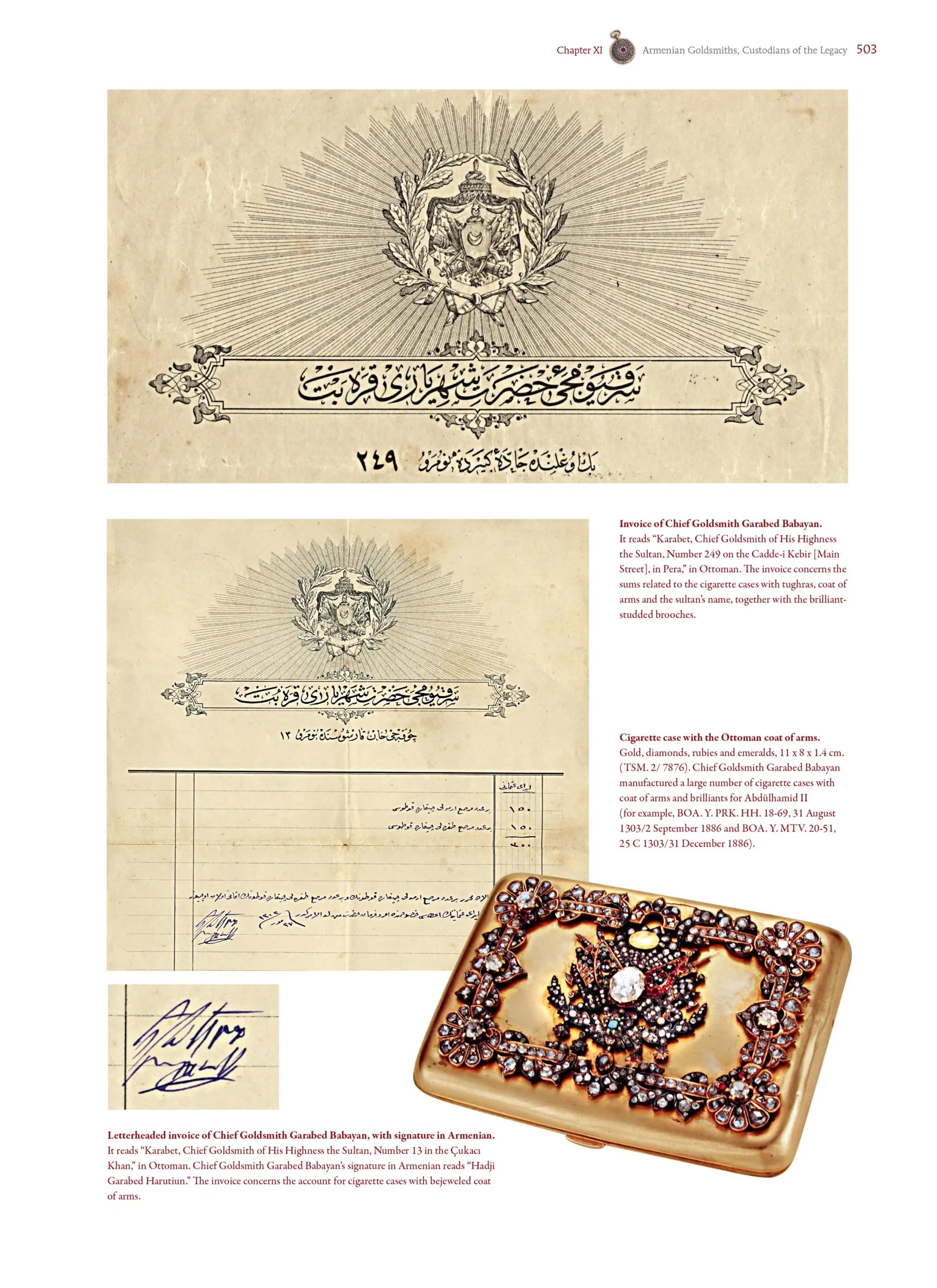Son ouvrage est une exception dans le monde de la publication. Une anomalie même. Car ces dernières années, rien de comparable en terme de recherche, de précision, d’illustration et d’historiographie n’a été publié en histoire du bijou (et non histoire l’art) à l’exception de très rares ouvrages universitaires. Ce livre, la première fois que je l’ai manipulé, n’était pas encore traduit en anglais et n’existait que dans sa première édition : à savoir en turc. J’ai eu connaissance de celui-ci lorsque je suis allée rencontrer le conservateur de la bibliothèque Nubar dans les locaux de l’UGAB à Paris. En effet, mes recherches sur les joailliers arméniens se heurtait à une première problématique : contextualiser les familles dans l’Empire Ottoman et plus particulièrement à Constantinople.
