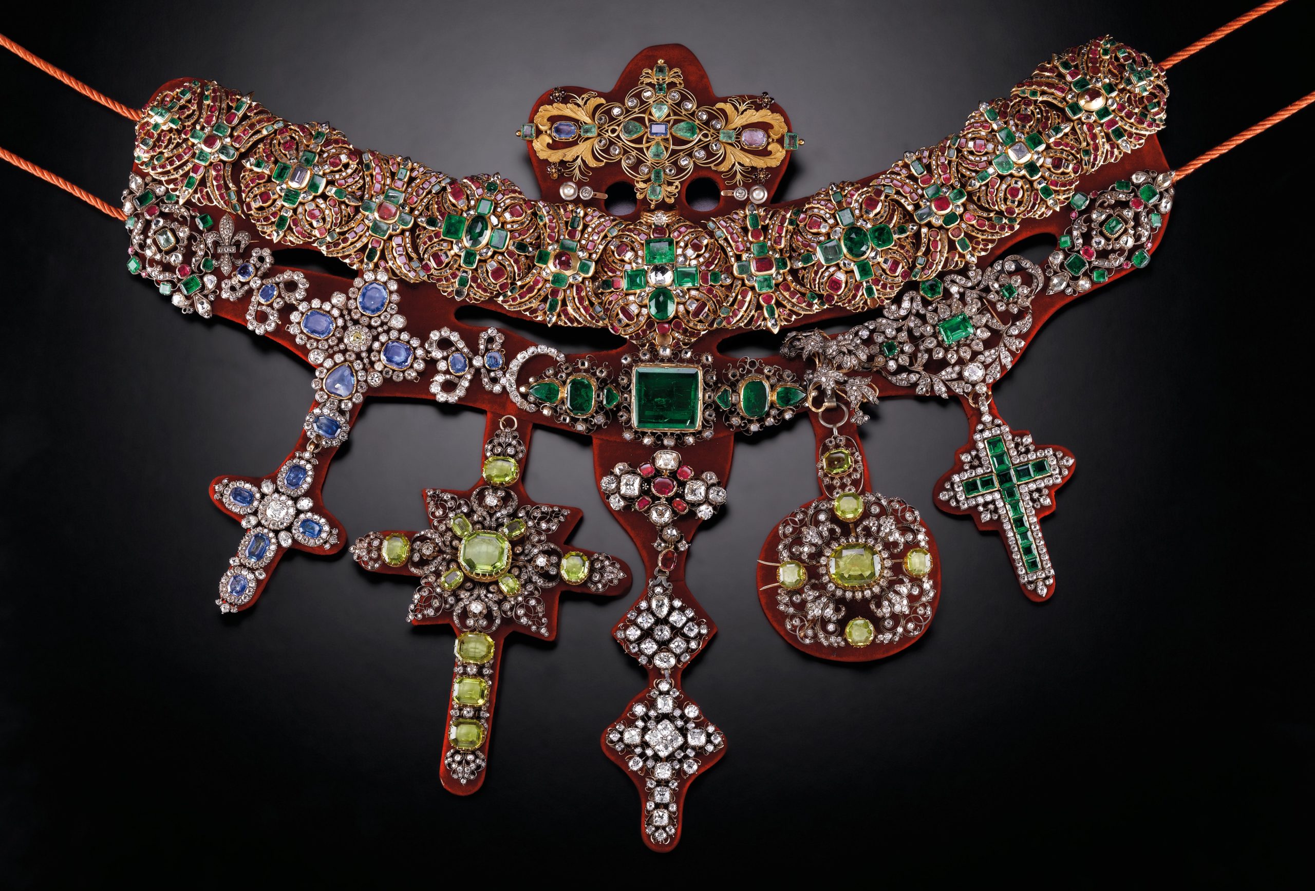 Episcopal cross, made around 1878, in gold, diamonds and emeralds. Gift of Umberto I and Margaret of Savoy. Preserved in the Treasure Museum of San Gennaro. Photo: Mattéo D’Eletto.