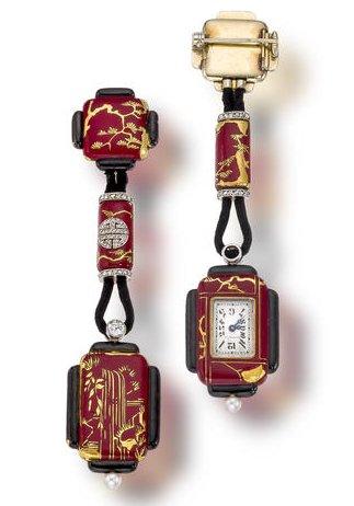This pocket watch was made for the Lacloche company. It is made of gold, diamonds, enamel and fine pearls. It is typical of the production of the house between 1920 and 1930. Photo : Bonhams
