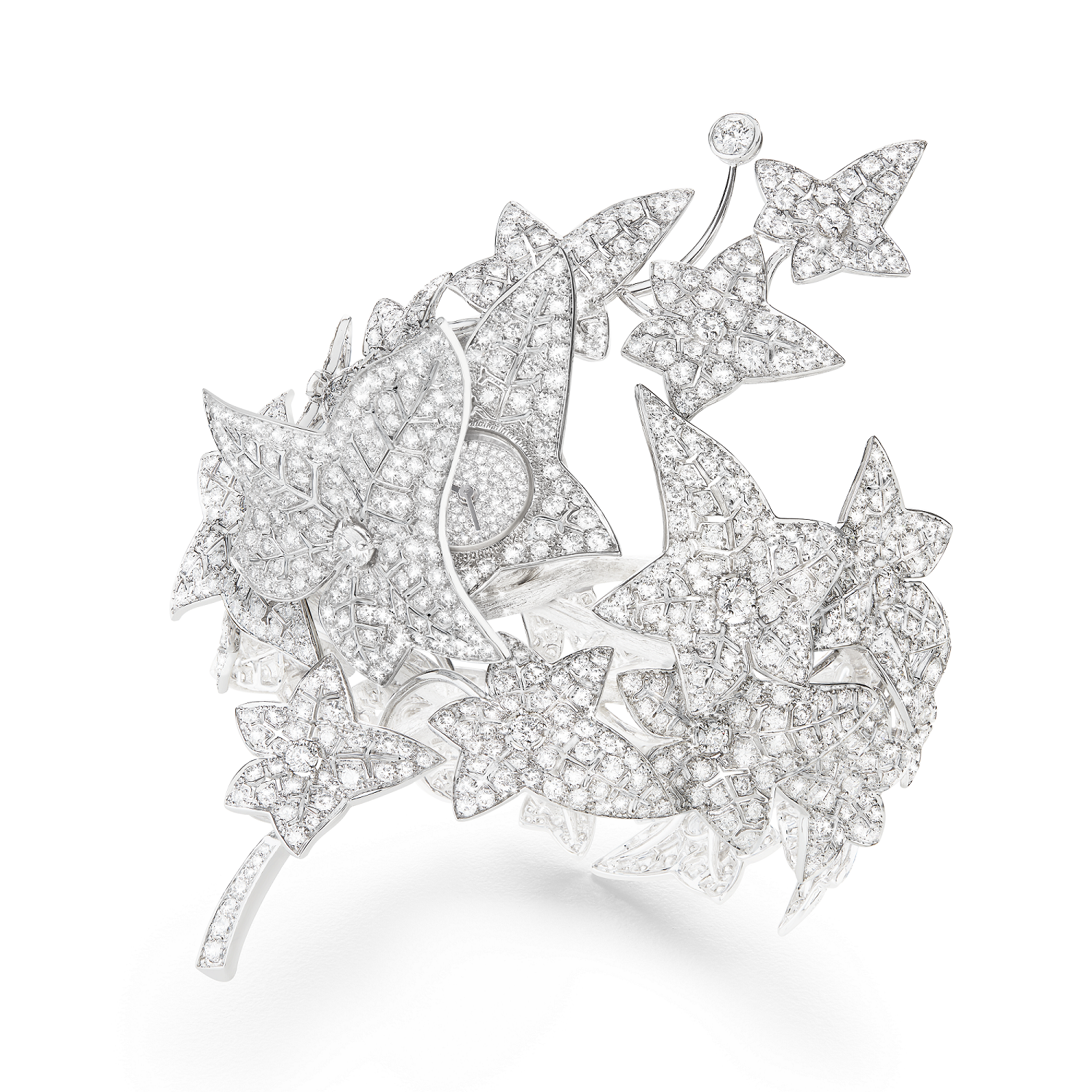 Lierre de Paris” secret watch in white gold and diamonds. Photo : Boucheron