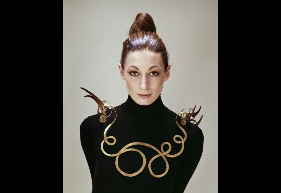 Photograph by Evelyn Hofer (1922-2009), Anjelica Huston wearing The Jealous Husband (made by Alexander Calder around 1940). Photo: © Estate of Evelyn Hofer © 2017 Calder Foundation New-York / ADAGP, Paris 2017