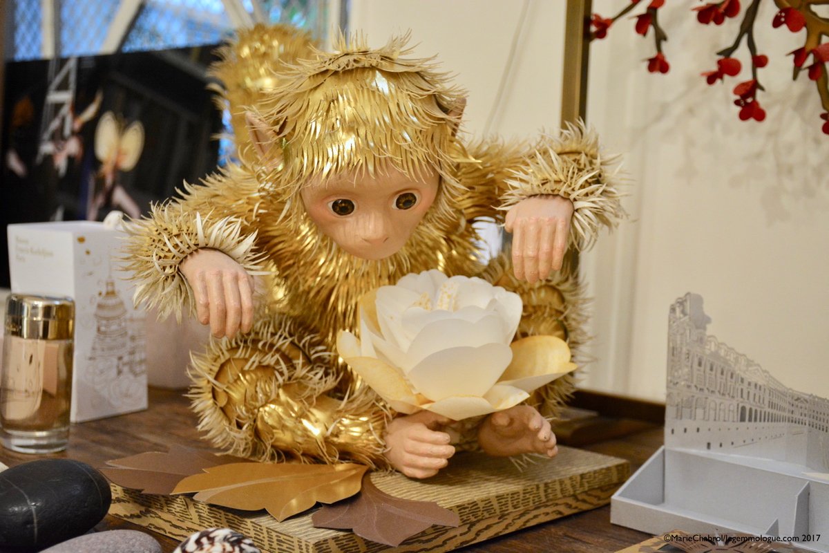 This little paper and leather monkey came back from Hong Kong. It was part of a scenography created for the Chinese New Year at the LandMark Mall in January 2016. The workshop has, among other things, made 62 monkeys like this one. Photo: Marie Chabrol