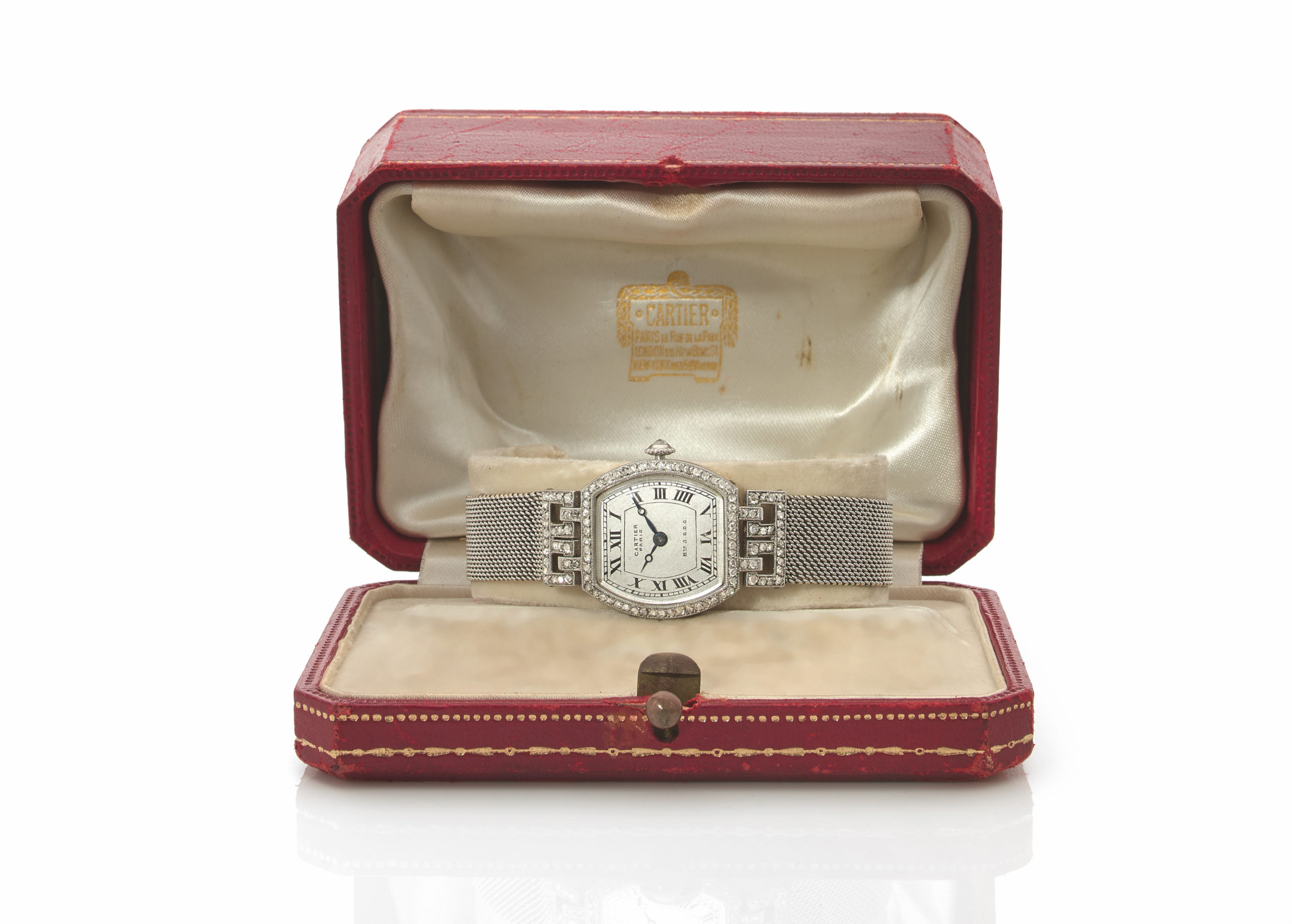 Lot 50: Cartier “Tortue” ladies’ watch, platinum, gold, diamonds, circa 1915. Estimated at between €7,000 and €10,000. Photo: Aguttes