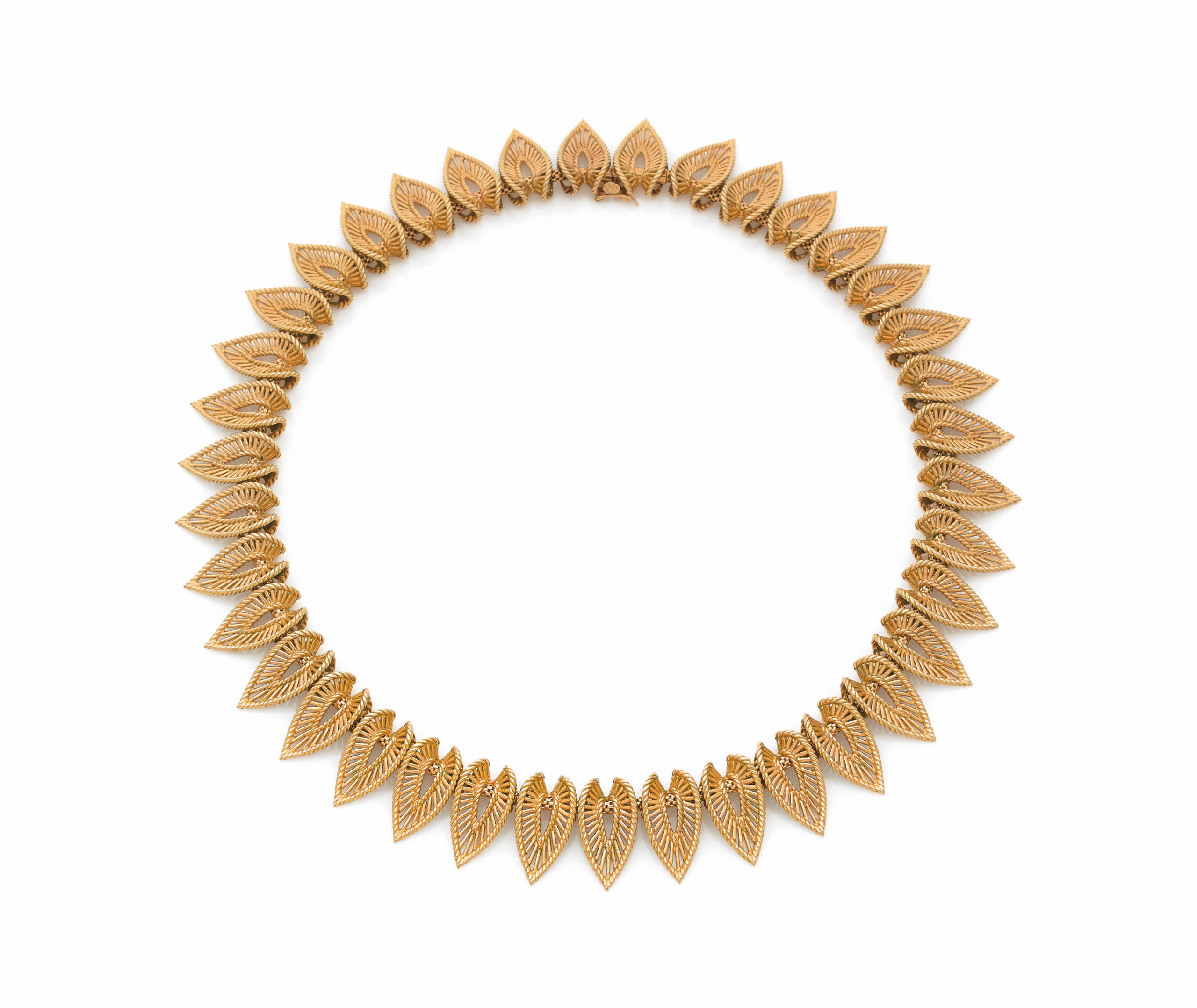 Lot 71: Cartier ‘Feuille’ gold necklace, circa 1950. Estimated at between €5,000 and €7,000. Photo: Aguttes