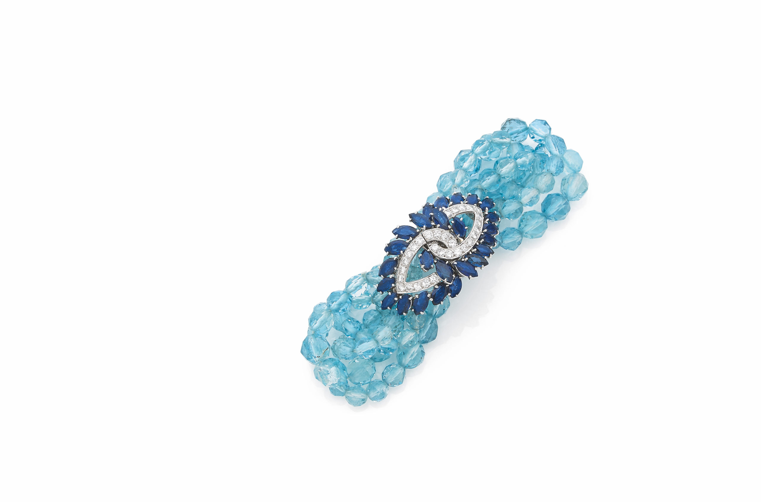 Lot 61: Cartier gold, platinum, diamond, sapphire and aquamarine bracelet. Circa 1960. Estimated at between €7,000 and €10,000. Photo: Aguttes
