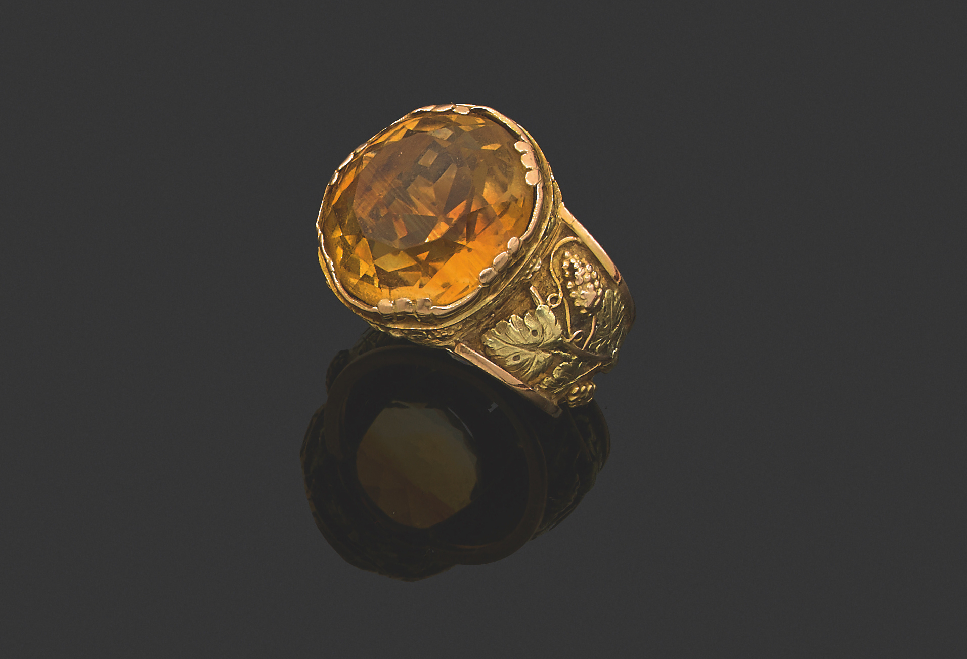 Lot 12: Gold and citrine bishop’s ring, 19th century. Estimate between 500 and 800 euros. Photo: Aguttes