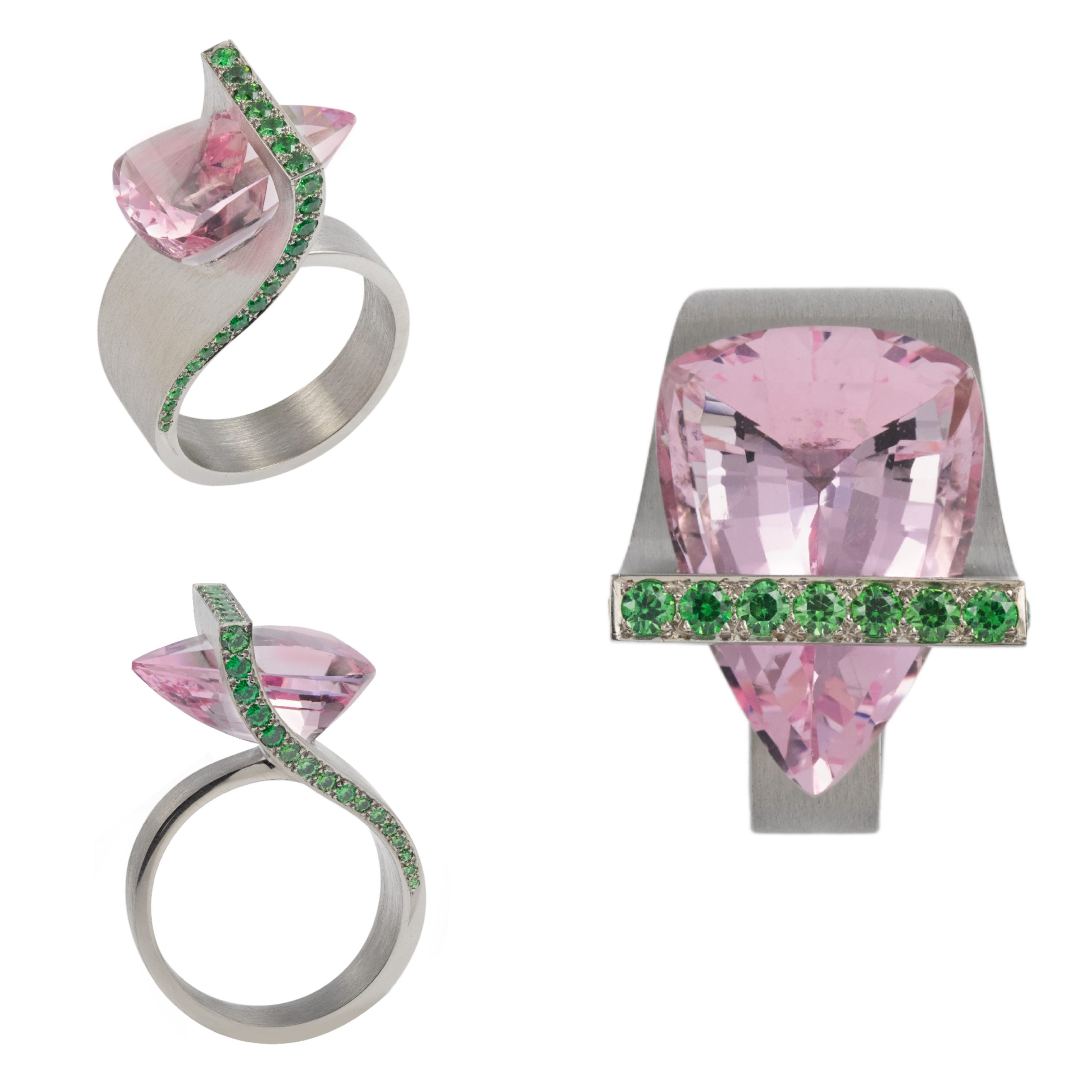 Orkeo ring in white gold, morganite and demantoid garnets. Photo: DiamondHolic / Gwenaelle de Contades