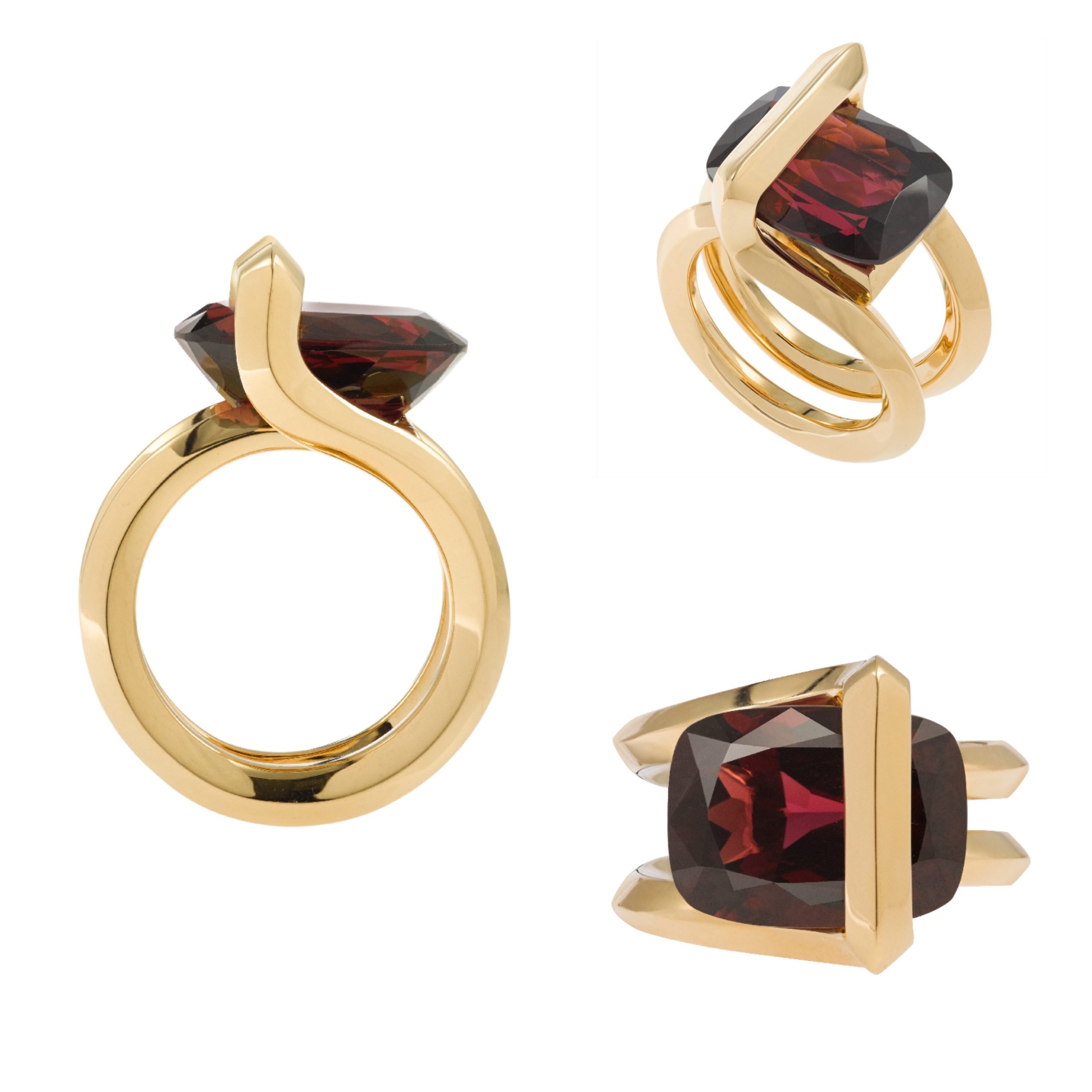 Yellow gold and garnet ring. Photo: DiamondHolic / Gwenaelle de Contades