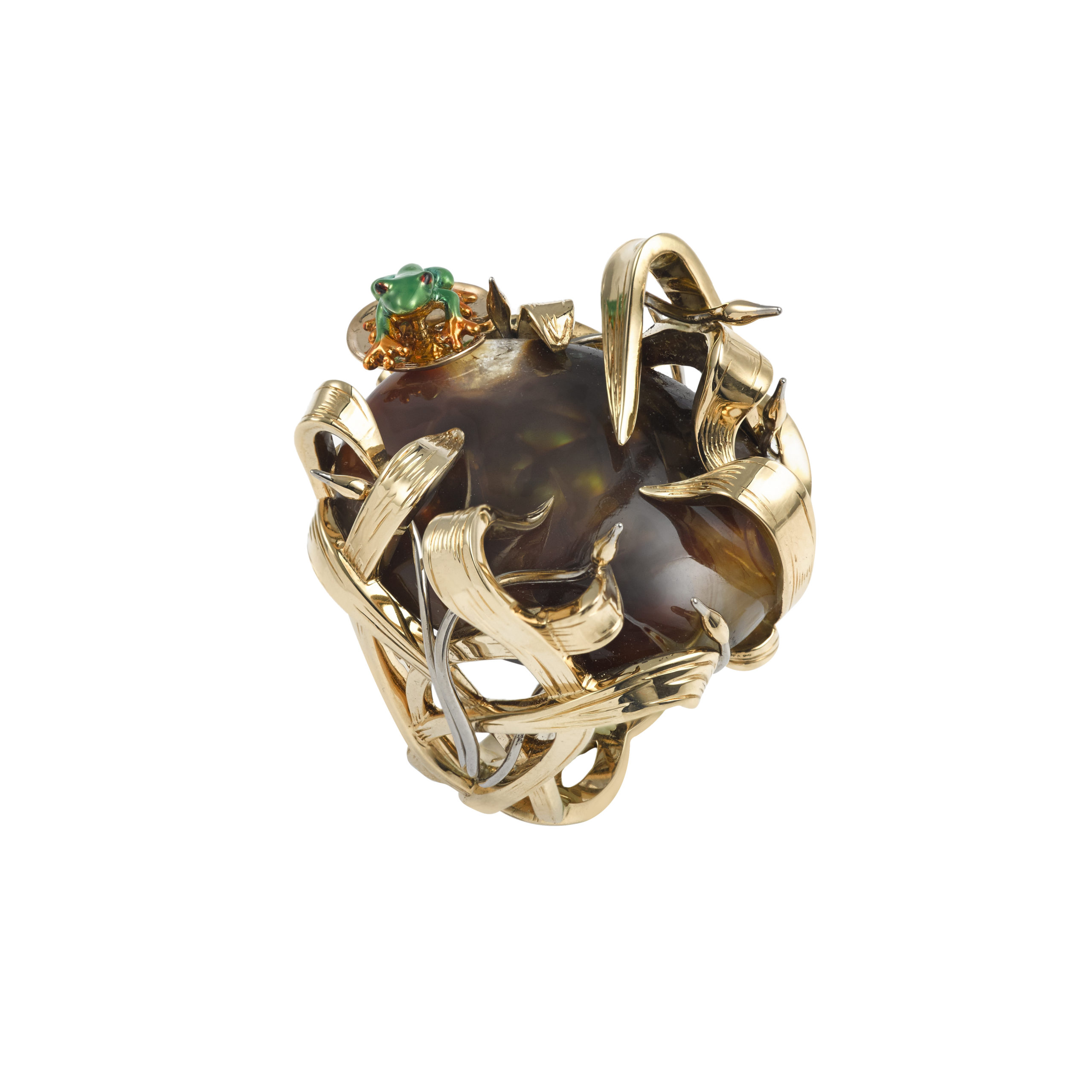 Yellow and white gold ring, flame agate. Photo: DiamondHolic / Gwenaelle de Contades