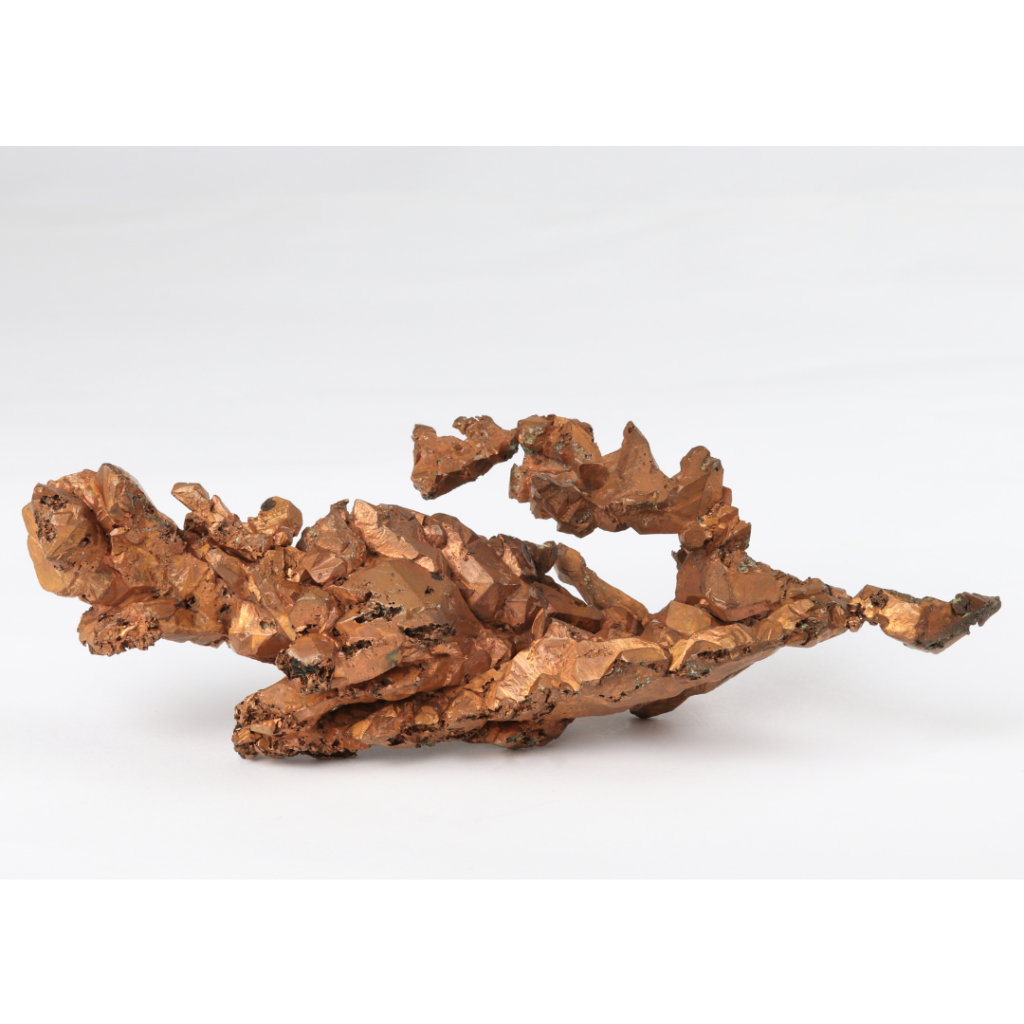 Some specimens presented in the exhibition of the Musée des Confluences in Lyon. (1) Cerusite, secondary lead ore, Namibia, Oshikoto, Tsumeb. (2) Spinel mace, Vietnam, Yên Bái, Luc Yên. (3) Native copper, USA, Michigan (4) Bauxite, Guinea aluminium ore, Niandan – Banier Range (5) Pyrite, Peru. Photos: Musée des Confluences – François Vigouroux