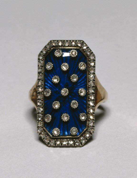 As the passion for the stars continued unabated, some very special rings appeared between 1770 and 1780. Made of gold and silver (platinum was not yet known), topped with a royal blue enamel plate, these rings featured a multitude of small stars or small round or star-shaped settings. It was undoubtedly Marie Antoinette who popularised this type of jewellery following her coronation as Queen of France in May 1774. She was then just 18 years old and her husband was barely older than her when they both ascended the French throne. These jewels can be seen as much as an anchoring of the astral chart as a way for the men to turn to a more powerful “force”, the sky. Indeed, the queen began to wear this type of jewellery while her pregnancy was still pending (the king’s sexual difficulties were well known, as he suffered from a malformation of the prepuce, making sexual intercourse painful; as a result, he was more interested in woodwork than in trifles), and it was not until four years later that the queen welcomed her first child: Marie-Thérèse Charlotte of France, also known as Madame Royale.