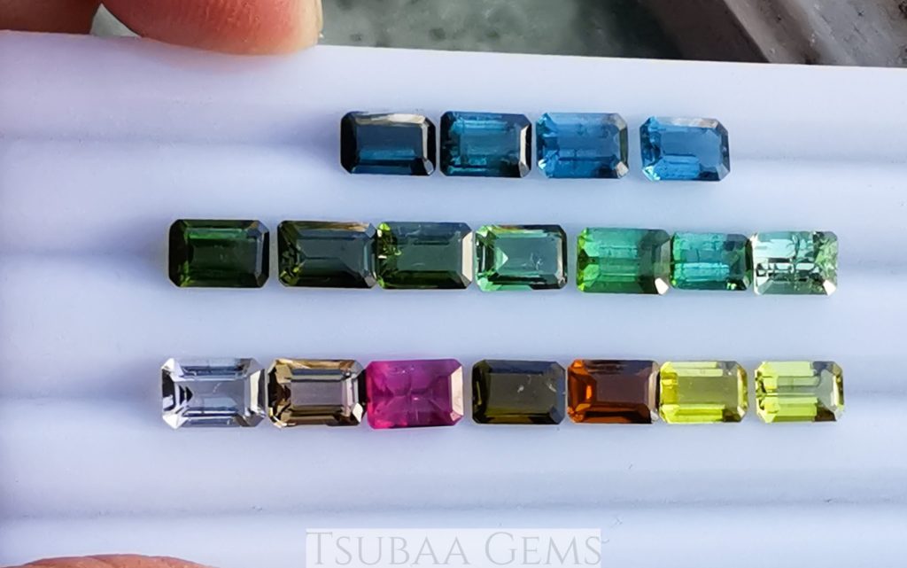 Assortment of multi-coloured emerald-cut tourmalines from Nigeria. Photo: Sophie Simon