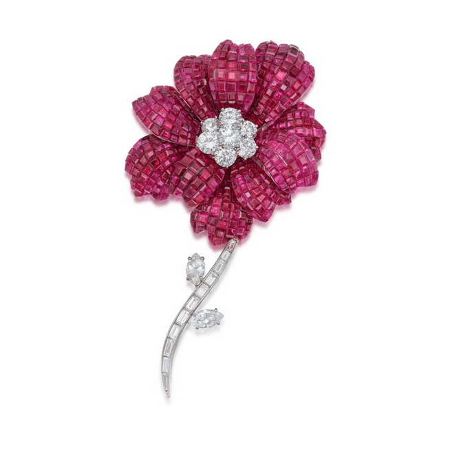 The jewellery catalogue may be small, but it is nonetheless sumptuous, with several pieces with high estimates approaching or exceeding $500,000. A JAR brooch should also find a new owner without difficulty. Note that Joyce Wolf was wearing this jewel in the photo taken for the opening in November 2013. The mysterious setting is extremely well represented in the collection, as is the plant theme, as flowers are among the favourite pieces in this set. If you are a lover of perfectly executed modern jewellery, you must discover the collection. And if you can, get a piece of the American dream that was the Wolf’s…