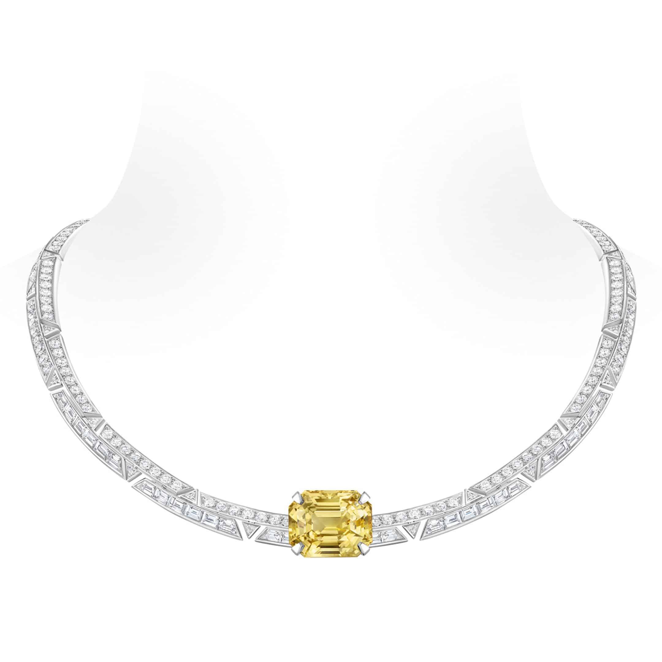 Drift necklace, white gold, 1 octagonal-cut yellow sapphire (30.47 carats) from Sri Lanka and diamonds. Photo : Louis Vuitton